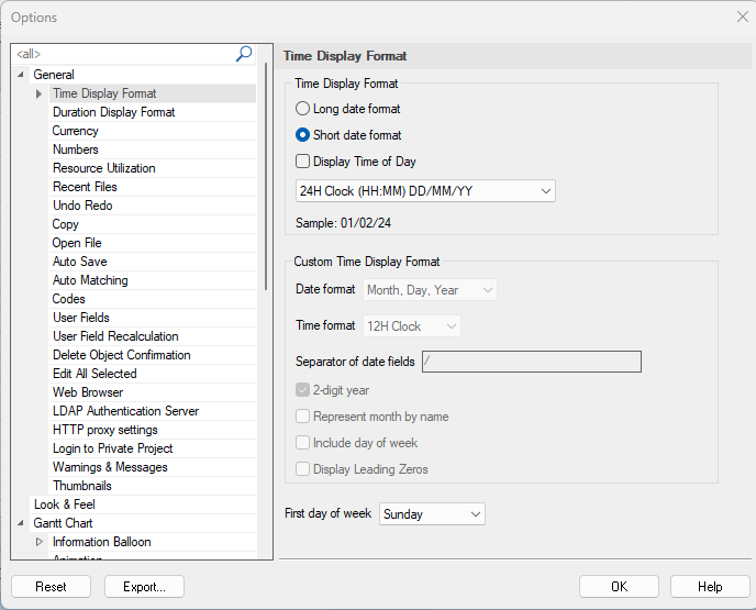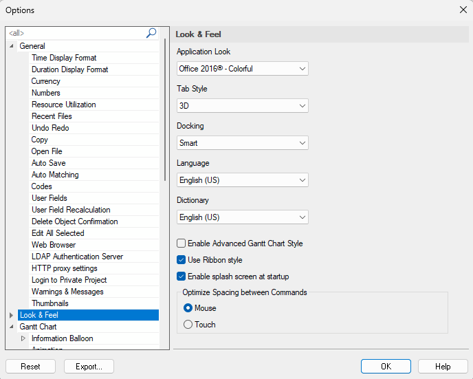 Pode-se definir as opções de configuração do Synchro acionando-se o menu File > Options. A janela de opções será exibida.